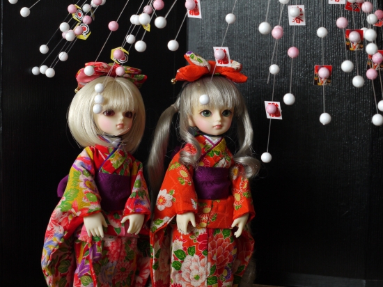 赤系とオレンジ系のきものなのですが、いいですねぇ。本当に可愛い。正月前なのに正月仕様の飾りなんぞつかってさくっと撮影してました。UPするまでに時間が掛ってしまいましたがまぁそれはそれで。
