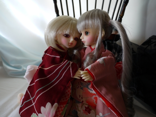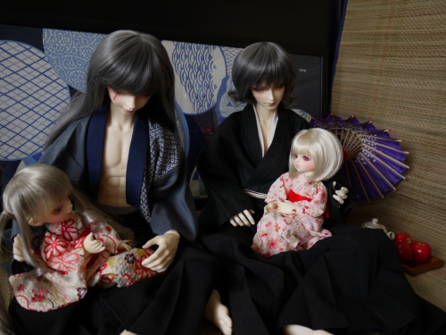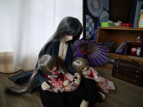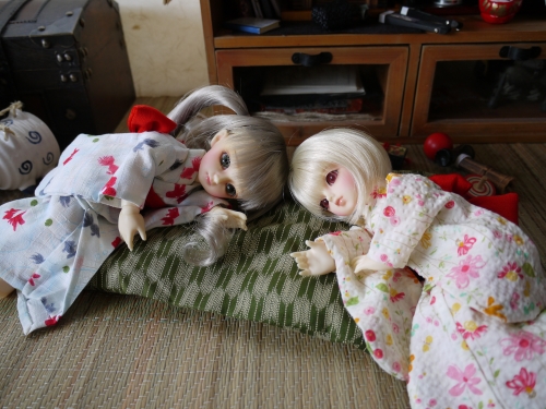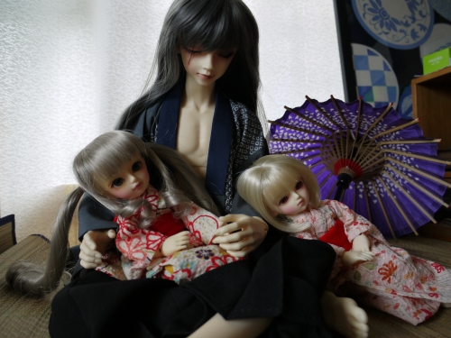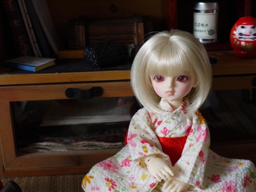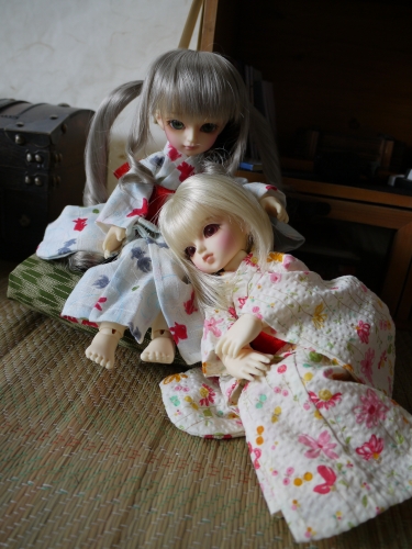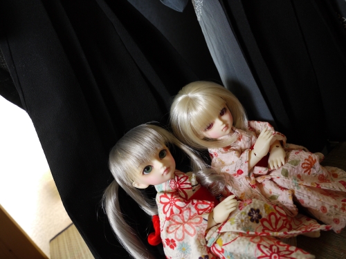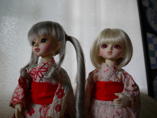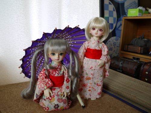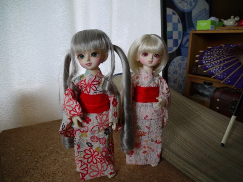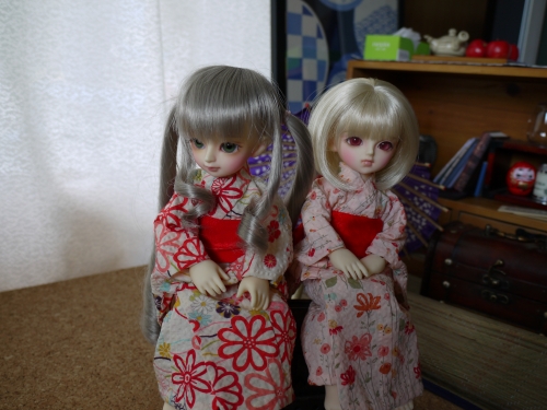 浴衣にしてはちょっと身丈が長いですが、可愛いのは可愛い。まひるが着てるやつの色違いも購入しておけばよかったと今更思います。でも赤っぽいの着せたかったんだよね。