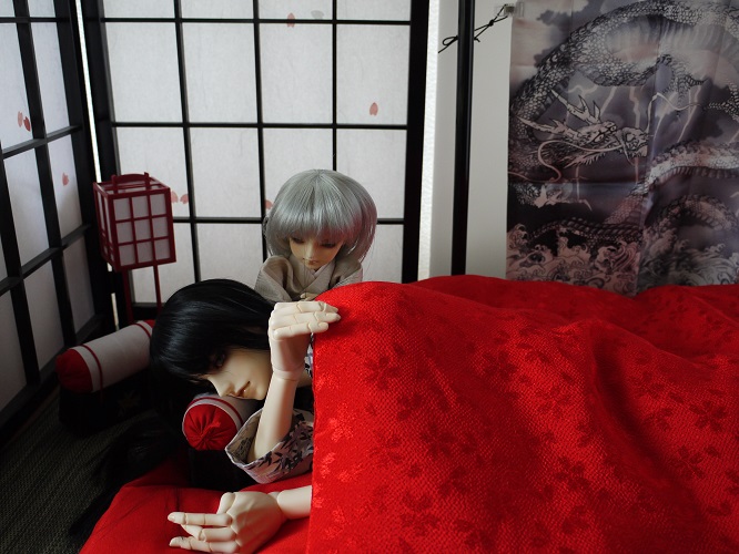雰囲気的には夕蔵より朝生が似合いそうな赤布団ですが、まずは夕蔵で。一人だと寂しいかと思って夕朔をちょこっと。